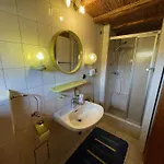 Ce logement comprend une salle de bains avec une toilette séparée et une douche. Des draps de bain sont également fournis.